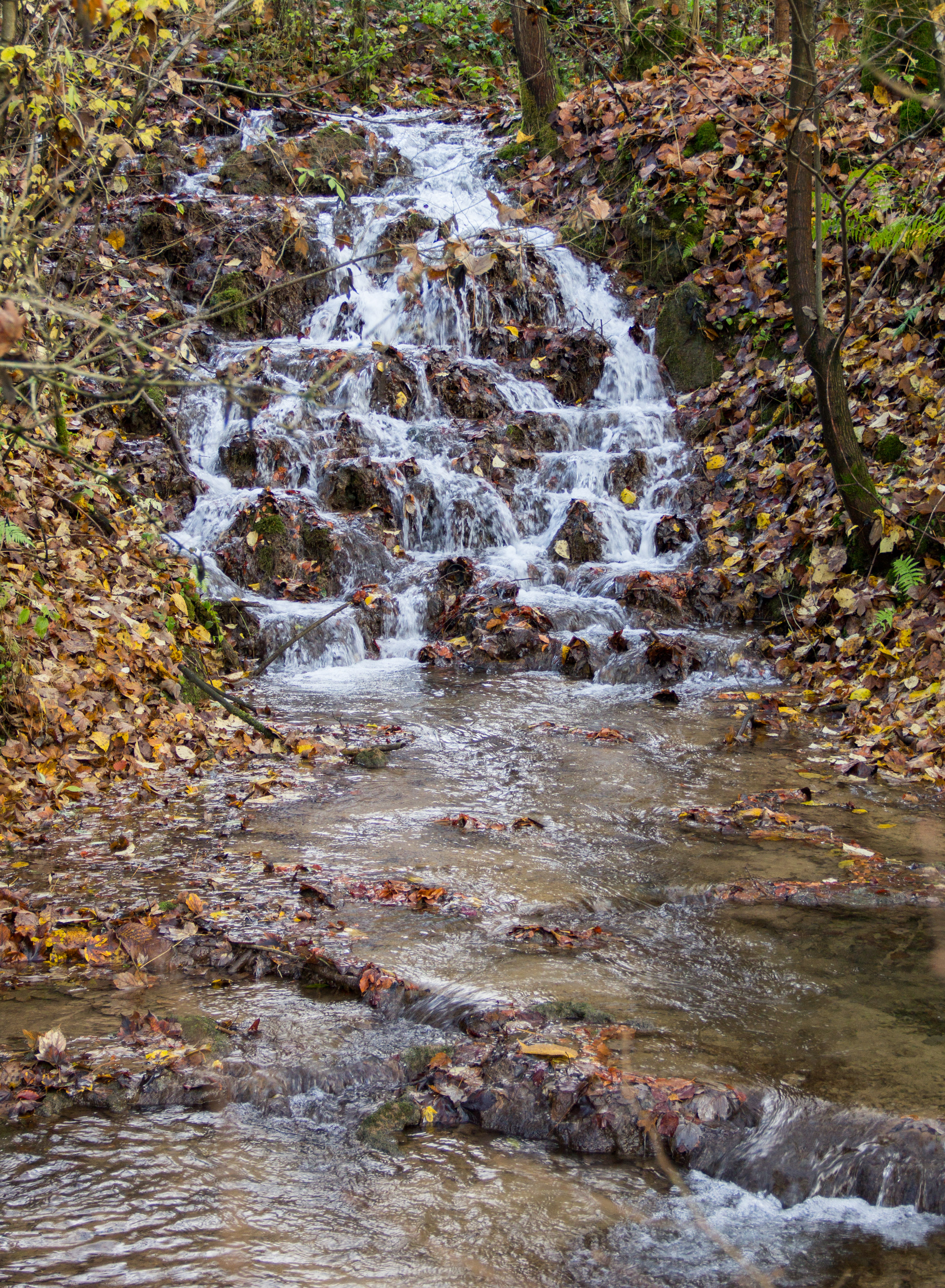 - Sight â A gentle curtain of water glistening over smooth rocks, framed by towering beech and spruce trees. In autumn, the surrounding leaves turn amber, creating a postcardâperfect view.